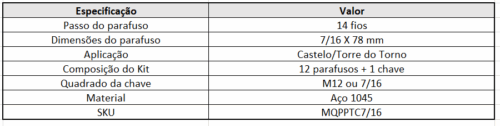12 Parafusos 7/16 Castelo/Torre Torno Nardini/romi + Chave
