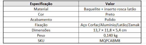 Cabo Alça Baquelite 137-M8 para Torno e Centro de Usinagem