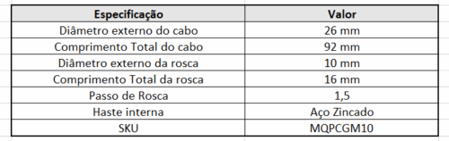Haste interna em aço zincado, com excelente resistência mecânica e proteção contra oxidação.