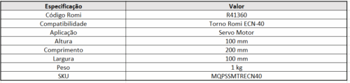 Suporte para servo motor compatível com torno Romi ECN-40, código R41360. Fabricado em material resistente, garante fixação segura e alinhamento preciso do servo motor, proporcionando maior […]